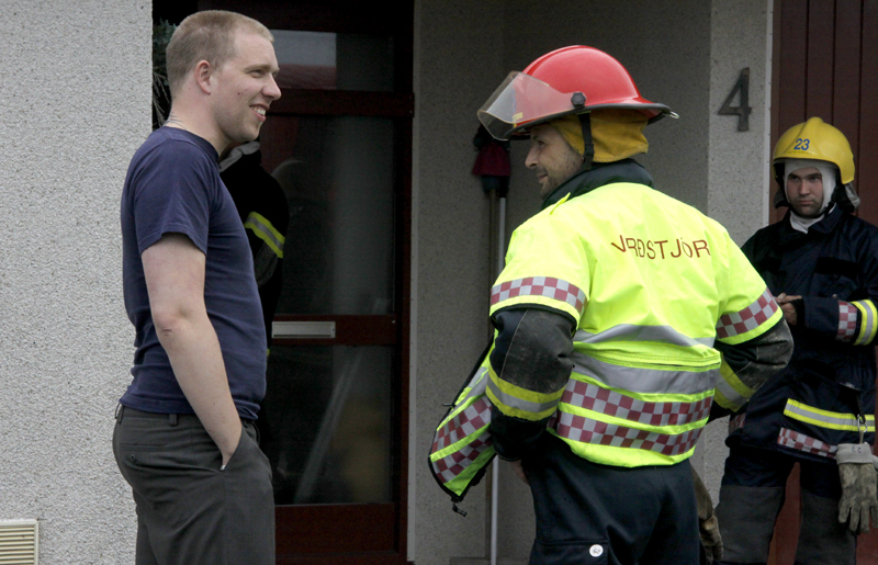 Í stað þess að bruna út á slökkvistöð fór Viðar Arason, slökkviliðsmaður, beint á útkallsstaðinn en hann býr í næstu götu. Þegar Viðar hafði fullvissað sig um að allir voru komnir út úr húsinu hljóp hann inn með slökkvitæki, slökkti eldinn og bar út potta og teppi sem kviknað hafði í.