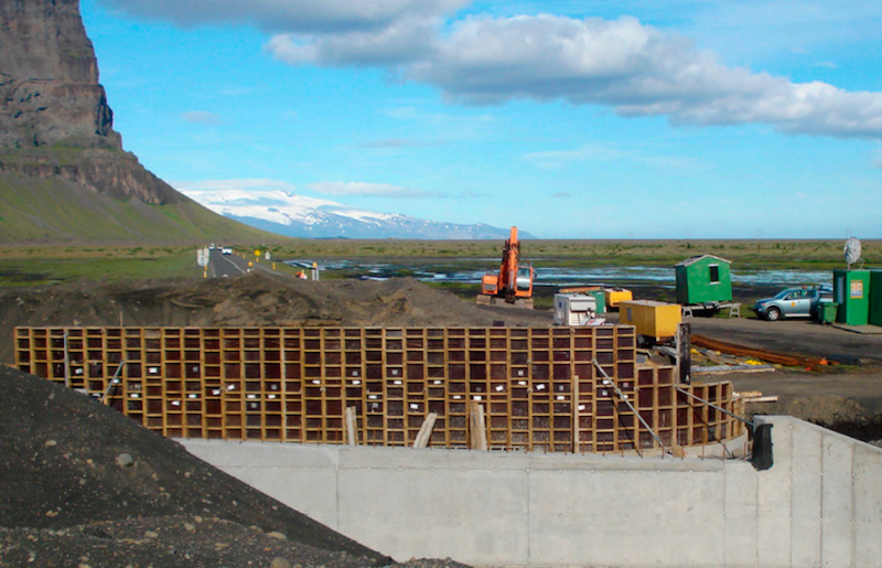 Vinnuflokkur Vegagerðarinnar er þessa dagana að vinna við smíði nýrrar brúar yfir Aurá í Skaftárhreppi, nærri Núpum, og fækkar þar með einbreiðum brúm á hringveginum um eina.