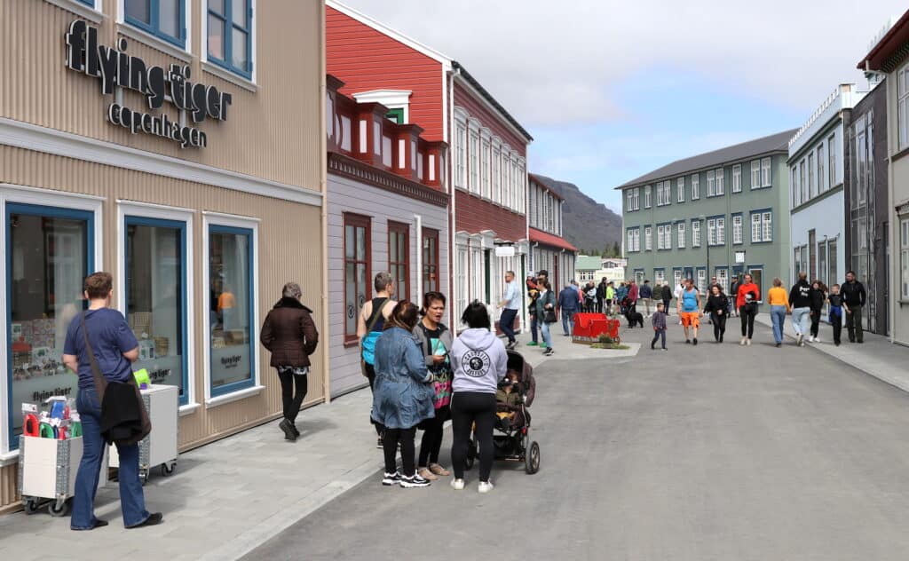 Um reynsluopnun, eða “soft opening” er að ræða. Framkvæmdir við fyrri áfanga miðbæjarins eru langt komnar og þó ekki séu öll húsin þrettán fullbyggð og ýmis handtök eftir í umhverfisfrágangi var það vilji allra aðstandenda að fá álit bæjarbúa og annarra, og slípa reksturinn til í samstarfi við gesti næstu daga og vikur.