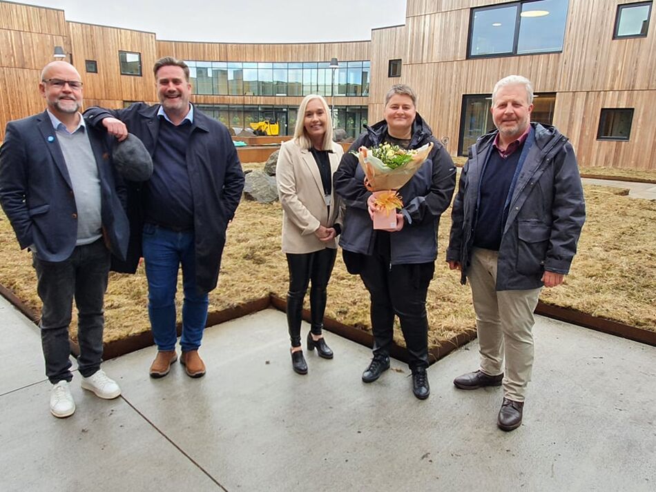 Kristín Jóna var verðlaunuð fyrir nafnið á dögunum og á myndinni hér að ofan er hún ásamt Gísla bæjarstjóra Árborgar, Díönu Óskarsdóttur forstjóra HSU og bæjarfulltrúunum Tómasi Ellert og Kjartani Björnssyni.