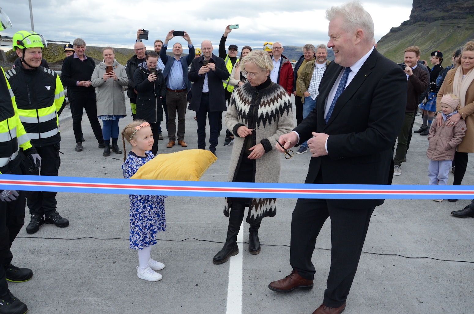 Einbreiðum brúm á Þjóðvegi 1 hefur nú fækkað um tvær og eru þær því orðnar 29 talsins með tilkomu nýrra tvíbreiðra brúa yfir annars vegar Núpsvötn og hins vegar Hverfisfljót. Sigurður Ingi Jóhannsson innviðaráðherra og Bergþóra Þorkelsdóttir, forstjóri Vegagerðarinnar, opnuðu formlega brýrnar tvær í dag með því að klippa á borða við hátíðlega athöfn á brúnni yfir Núpsvötn.