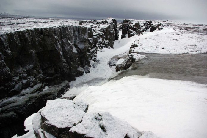 Nýr Öxarárfoss varð til um helgina þegar að klakastífla myndaðist fyrir neðan brúnna á Öxará með þeim afleiðingum að straumurinn leitaði norður, meðfram þjóðveginum, áður en áin féll niður í Stekkjargjá.