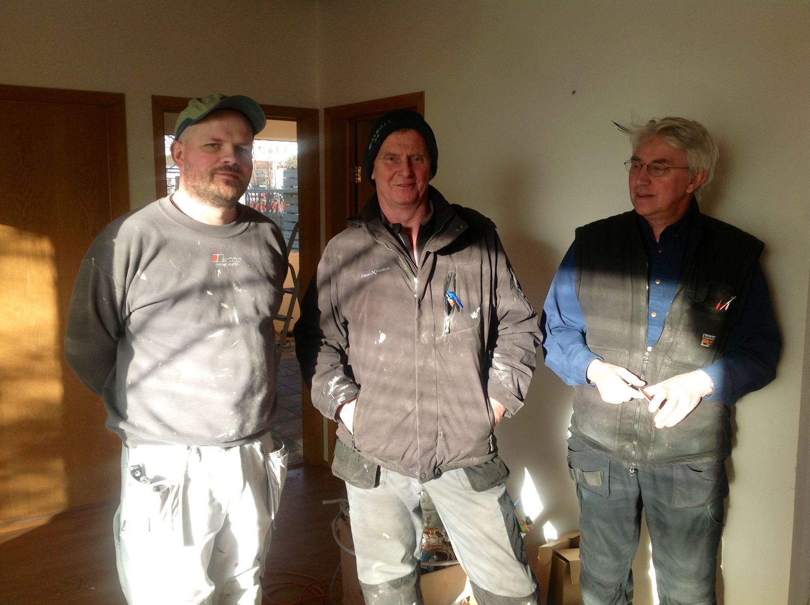 Nú vinnur hópur iðnaðarmanna hörðum höndum að því að gera húsnæðið þannig úr garði að það henti starfsemi frístundaskólans.