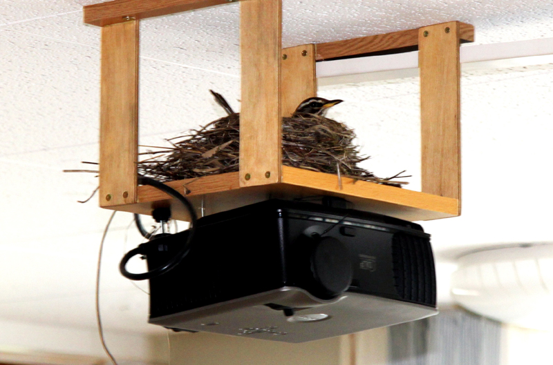 En náttúran gekk til liðs við skólann og oddvitann. Skyndilega fjölgaði um fimm í skólanum. Þröstur einn ákvað að nýta sér ónotað húsnæði skólans til hreiðurgerðar og liggur hann þar nú á fimm eggjum.