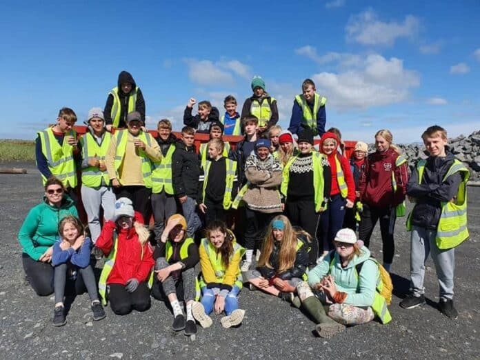 Lilja og vinnuskólakrakkarnir héldu í Landeyjafjöru þar sem þau unnu við hreinsun í blíðskaparveðri og að sjálfsögðu voru grillaðar pylsur í hádegisverð til að halda uppi orkunni.