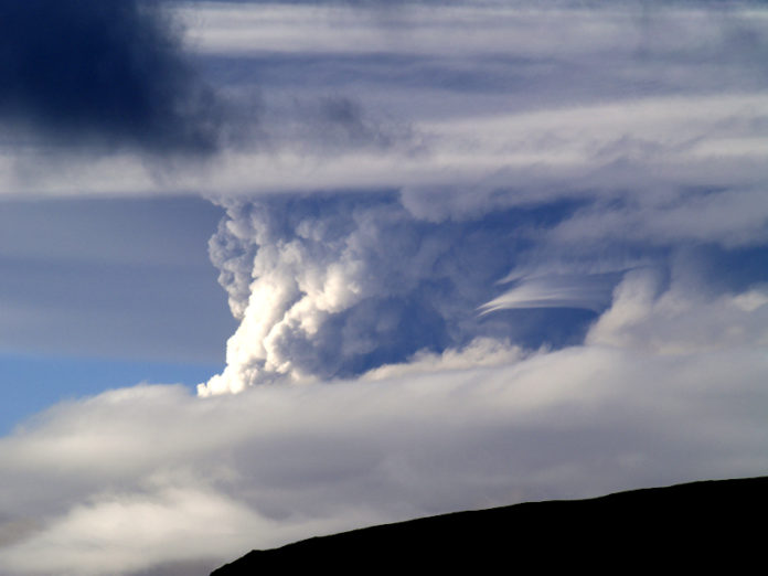 Í 2-3 kílómetra hæð lagði gosmökkinn til suðurs og suðvestur en hærra uppi lagði hann í austurátt. Gosið er mun öflugra en það sem var í Grímsvötnum 2004 og nokkuð öflugra en gosið í Eyjafjallajökli.