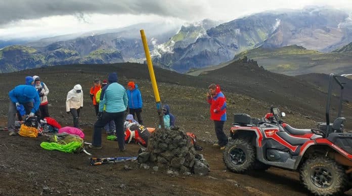Hún hafði verið á göngu í tíu manna hópi þegar hún hrasaði á gönguleiðinni og slasaðist. Um er að ræða svipaðar slóðir og útköll björgunarsveita hafa verið á undanfarna daga.