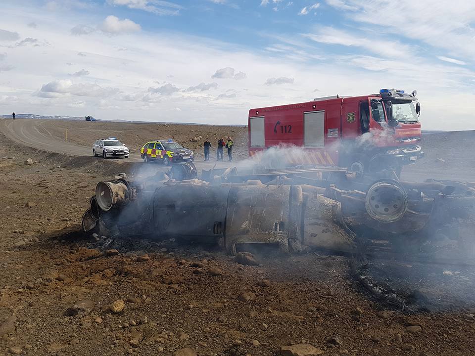 Slökkviliðsmenn frá Brunavörnum Árnessýslu í Reykholti voru kallaðir á vettvang, en um 40 km eru frá slökkvistöðinni að slysstaðnum. Það var því lítið sem slökkviliðið gat gert þegar komið var á staðinn annað en að slökkva þann litla eld sem eftir var.
