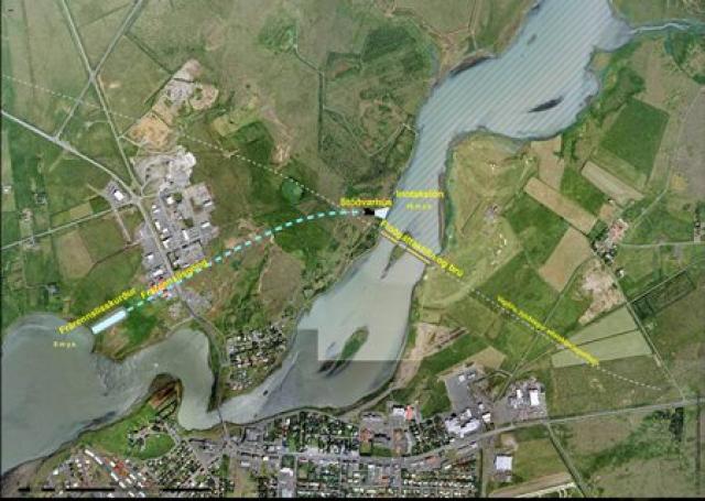 Morgunblaðið fjallar um málið í dag en þar segir Kristján Már Sigurjónsson, byggingaverkfræðingur hjá Verkís, að hugmyndin sé að steypa lágan þröskuld í ána og reisa síðan stöpla með 20 metra millibili. Á milli þeirra komi lokur sem stífli ána og lyfti vatnsborði hennar um 3-4 metra.