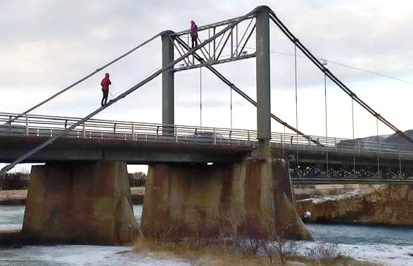 Liðsmenn Björgunarfélags Árborgar eru nú að ganga frá jólaskreytingum á Ölfusárbrú en jólaljósin í Árborg verða kveikt næstkomandi fimmtudagskvöld.