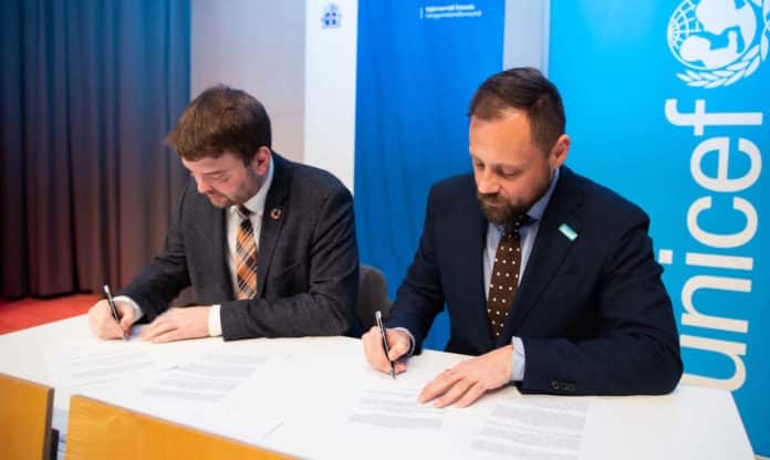 Ásmundur Einar Daðason, félags- og barnamálaráðherra, og Bergsteinn Jónsson, framkvæmdastjóri UNICEF á Íslandi, undirrituðu í vikunni tímamótasamstarfssamning fyrir réttindi barna á Íslandi.