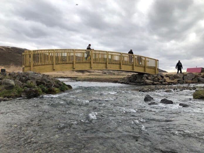 Lokunartíminn hefur verið nýttur til endurbóta á gönguleiðinni en jafnframt hefur verið sett upp ný brú yfir Hengladalaá sem leysir af hólmi gömlu staurabrúna sem komin var tími á.