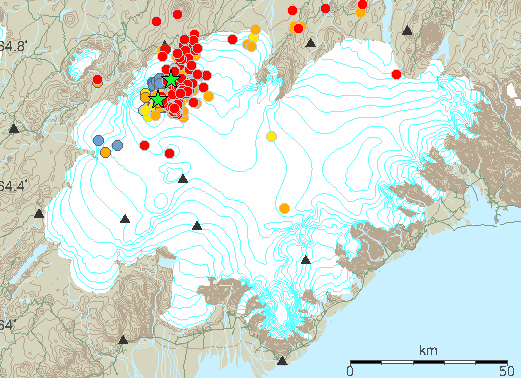 Á þriðja hundrað jarðskjálftar hafa þegar mælst. Stærstu skjálftarnir eru um og yfir þrjú stig að stærð. Þessi hrina er sú öflugusta sem hefur orðið á þessu svæði um árabil. Athuganir gefa til kynna að um kvikuhreyfingar séu að ræða. Aukinn viðbúnaður er á Veðurstofunni vegna þessa og hefur flugmálayfirvöldum verið gert viðvart.