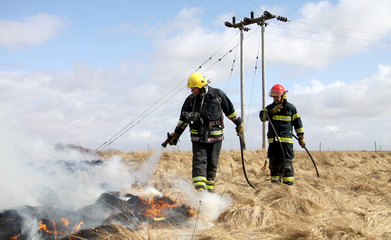 Rafmagnslína norðan Eyrarbakkavegar, við Litla-Hraun, slitnaði klukkan hálf tvö í dag og olli töluverðum sinubruna. Slökkvistarf stendur enn yfir.
