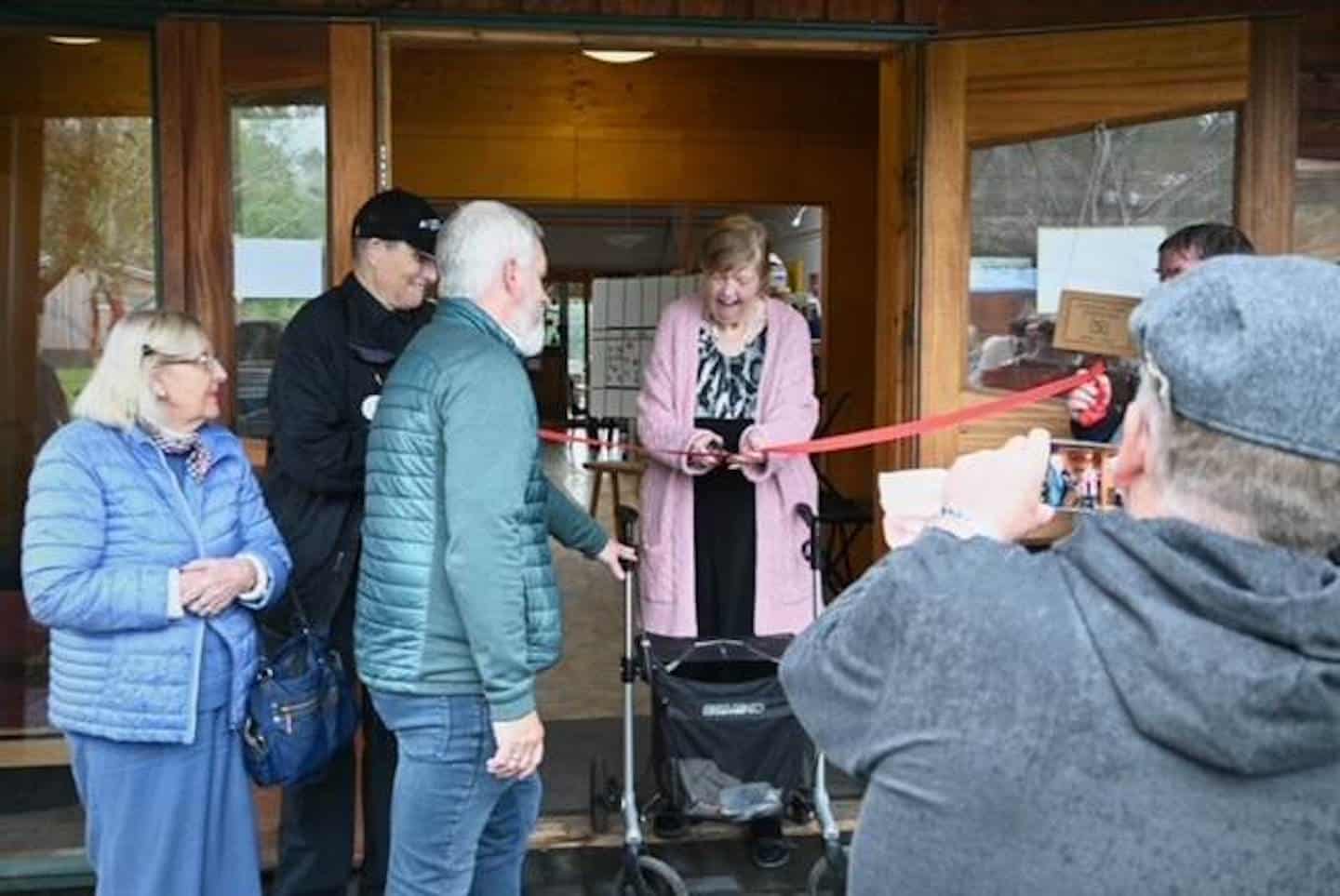 Það var Edda Guðmundsdóttir íbúi að Sólheimum sem vígði rampinn en hún styður sig við göngugrind. Við þetta tækifæri sagði Edda „Það er gott á fá ramp!“ og klippti svo á borðann. Halli Valli spilaði á gítar og stjórnaði söng sem Ármann Eggertsson, Guðlaug Jónatansdóttir og Hanný María Haraldsdóttir fluttu ásamt Sólheimakórnum.