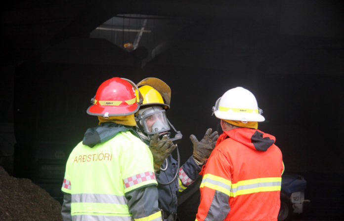 Upptök eldsins voru í spónahrúgu og er talið að gerjun hafi valdið hitanum í hrúgunni.