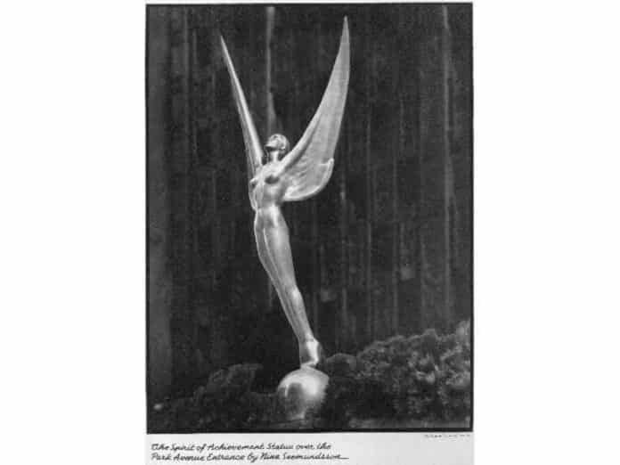 Frumgerð verksins Afrekshugur stendur yfir anddyri Waldorf Astoria hótelsins í New York. Með verkinu bar Nína sigur úr býtum í hugmyndasamkeppni árið 1931.