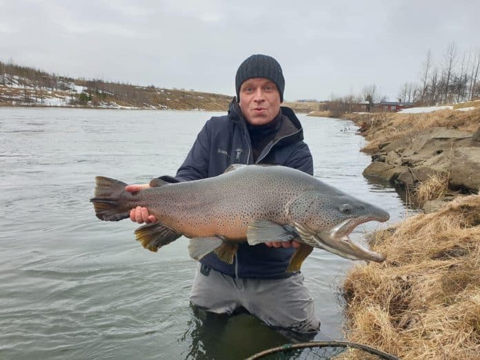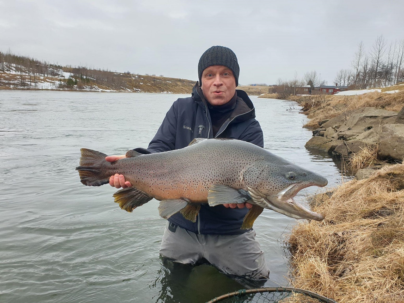 Þetta er einn stærsti urriði sem hefur veiðst í Ytri-Rangá á síðustu árum en hann var 7,6 kílógrömm í háfnum, 81 sentimetri og ummálið 52 sentimetrar. Honum var sleppt að loknum mælingum.