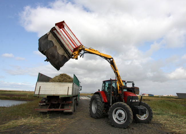 Sigurður heitinn Ásgeirsson, refaskytta og þúsundþjalasmiður í Gunnarsholti, smíðaði sláttuvélarnar sem nú eru notaðar.