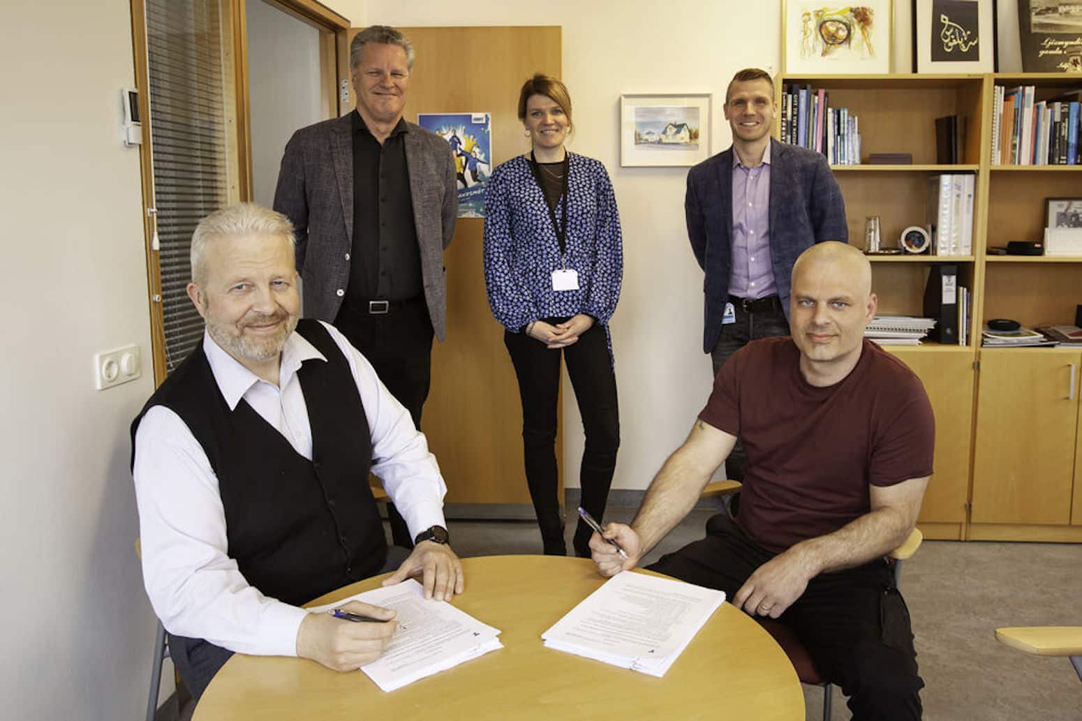 Gísli Halldór Halldórsson, bæjarstjóri Árborgar og Tyrfingur Guðmundsson, framkvæmdastjóri GTs. ehf. skrifuðu undir samninginn en með þeim eru Þorsteinn Hjartarson, sviðstjóri fjölskyldusviðs Árborgar, Helga María Pálsdóttir, bæjarritari og Bragi Bjarnason, deildastjóri frístunda- og menningardeildar.