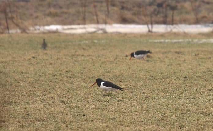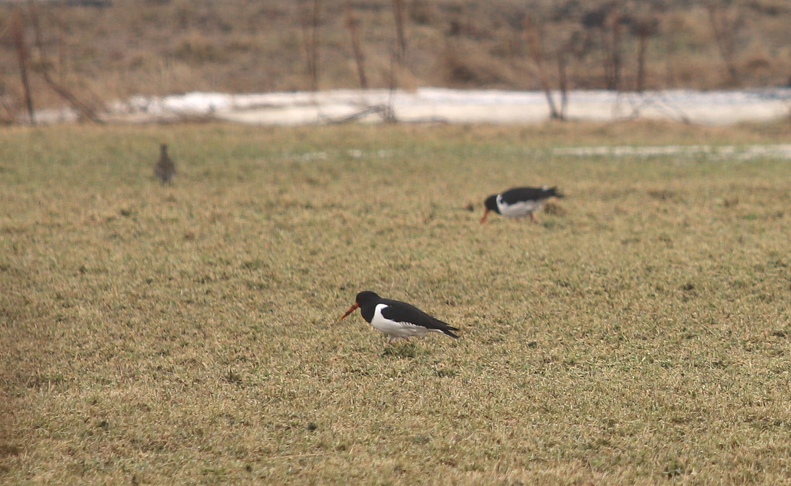 Annars hefur fuglalífið í Sandvík verið fjörugt að undanförnu, hér er mikið af grágæsum, heiðagæsum og blesgæsum auk þess sem helsingjar hafa látið sjá sig. Lóan, hrossagaukurinn og stelkurinn eru löngu komin, skógarþrösturinn syngur sig hásan þessa dagana og starrinn er byrjaður að leita að glufum fyrir hreiður.