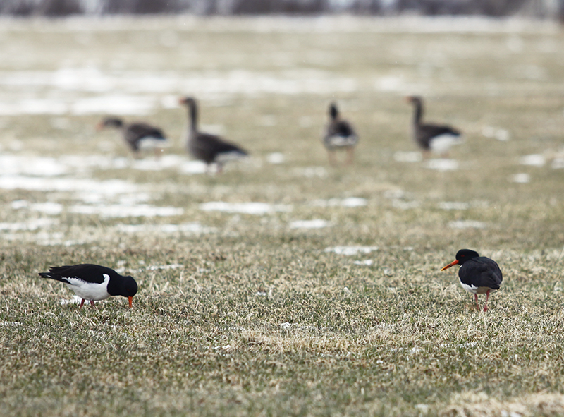 Nokkrir tjaldar hafa sést í Sandvík á liðnum dögum, enda túnin í Stóru-Sandvík kjörinn millilendingarstaður áður en haldið er ofar í sýsluna. Það var hins vegar ekki fyrr en í morgun að sjálfur Sandvíkurtjaldurinn heilsaði upp á mannskapinn. Hann er einstaklega hávaðasamur, en um leið auðþekktur á því hversu greindarlegur hann er til augnanna.