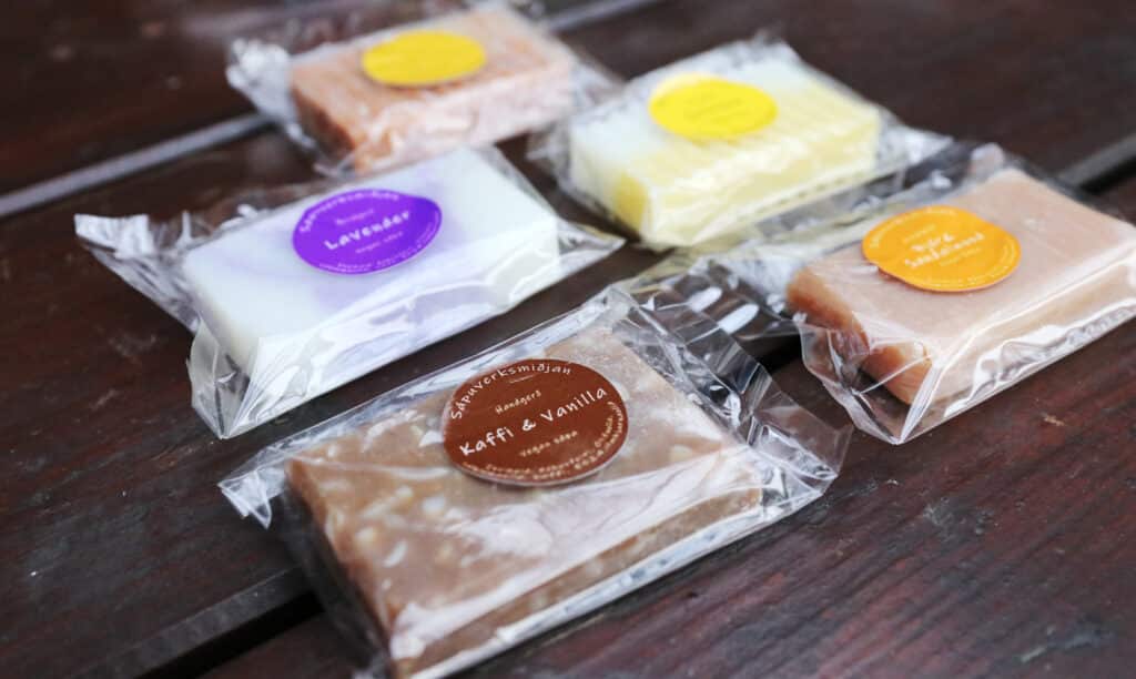 „Við erum með fimm tegundir af sápum í framleiðslu eins og er, en það eru lavendersápa sem má einnig nota sem sjampó. Hunangs- og sítrónusápa, bjór og sandalwood, sítrónusápa og kaffi/vanillu sápa,“ segir Steinunn.
