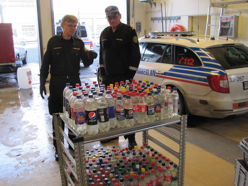 Ekki var neinn búnaður sem tengdist framleiðslunni á staðnum heldur hafði húsráðandi soðið landann í potti á eldavélahellu og honum hafði öllum verið tappað á líters eða hálfslíters flöskur undan gosdrykkjum sem voru tilbúnar til sölu.