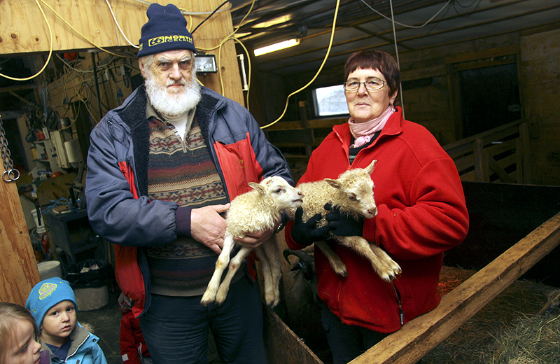 Ærin Skessa kom eigendum sínum, Ingibjörgu Guðmundsdóttur og Emil Ragnarssyni á Eyrarbakka, skemmtilega á óvart þegar hún bar tveimur lömbum í morgun.