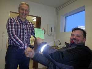 Sauðfjársæðingarvertíðin hófst þann 1. desember og á meðfylgjandi mynd má sjá Svein Sigurmundsson afhenda Jóni Vilmundarsyni í Skeiðháholti fyrsta sæðisskammtinn sem afgreiddur var á þessari vertíð.