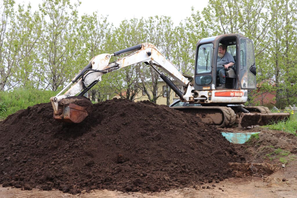 „Tengdasynir mínir hafa verið liðtækir í moldarvinnslunni síðastliðin sumur en í gegnum tíðina hafa það aðallega verið Þorvaldur sem nú er látinn og Vilhjálmur sem hafa séð um þá hlið. Gunnar vinur okkar hefur svo tekið að sér að moka á kerrurnar undanfarin sumur. Bjarni bróðir sem nú býr í húsi foreldra minna er mér afar hjálplegur, því sumt ræð ég ekki við ein, eins og vinnsluna á pokamoldinni og allskyns skilta- og smíðavinnu. Allir í fjölskyldunni hafi lagt hönd á plóginn í gegnum tíðina“ segir Margrét.