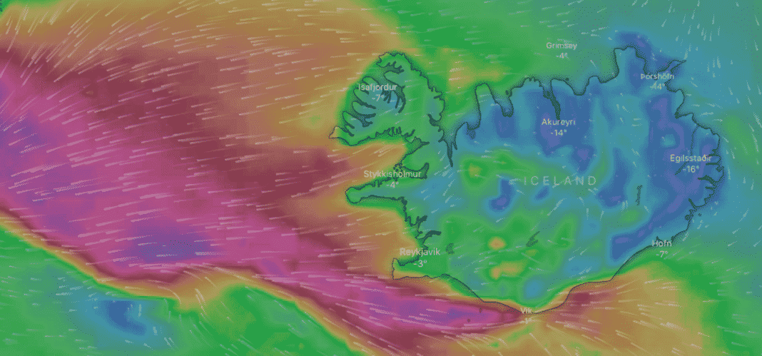Hér fyrir neðan má sjá lægðina í beinni.