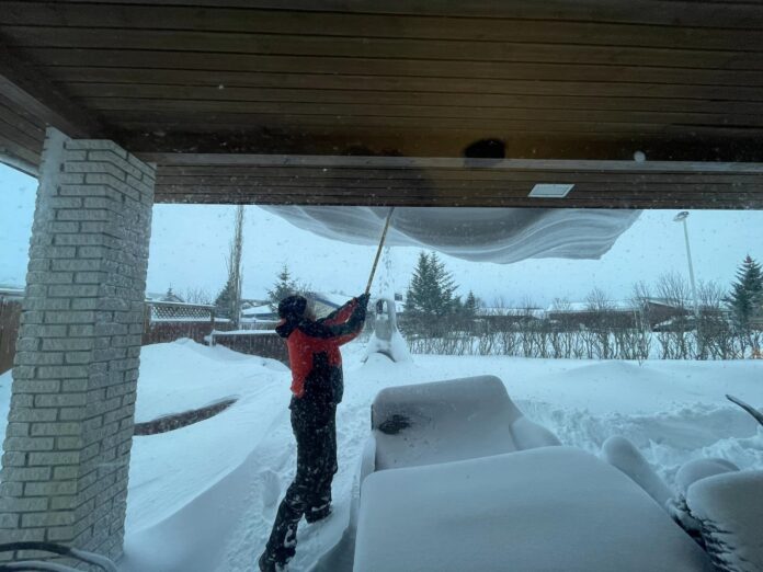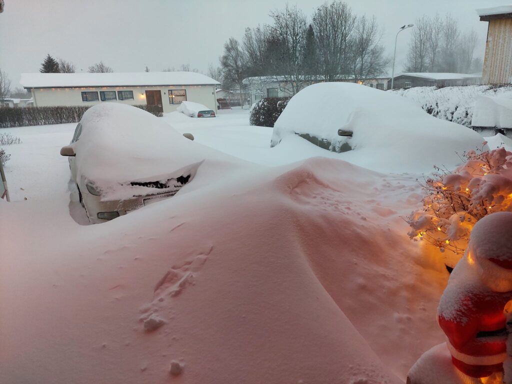Selfyssingar hafa nú flestir náð að moka sig út úr húsum sínum og eru jafnvel farnir að huga að því að moka upp bílana sína úr innkeyrslunum. Það dugar þó skammt í flestum tilvikum þar sem hreinsun á götum er ekki langt komin og enn ófært í mörgum hverfum.