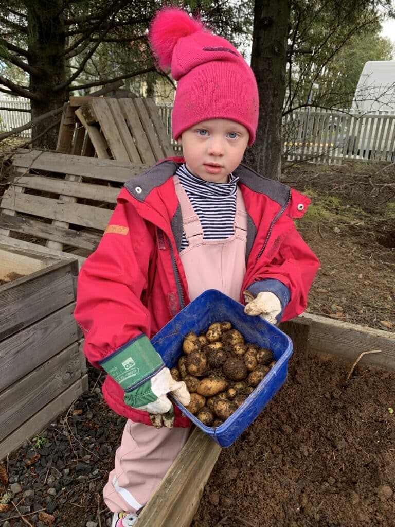 „Varðandi sjálfbærni almennt þá finnst okkur að við getum gert miklu betur og bætt við þekkingu. Því datt okkur í hug að það væri tilvalið að halda námskeið fyrir leikskólakennara sem byggt væri á þeim grunni sem Margarita hafði þegar unnið í Álfheimum, varðandi gildi sjálfbærra samfélaga og vistrækt. Við fengum vistræktarkennarann Hildi Dagbjörtu Arnardóttur í lið með okkur, til þess meðal annars að kenna þátttakendum að rækta sitt eigið grænmeti.“