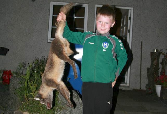 Það hljóp heldur betur á snærið í kvöld hjá Emil Vilbergssyni, sjö ára strák á Flúðum í Hrunamannahreppi, en hann veiddi fullorðna tófu nálægt Auðsholti.