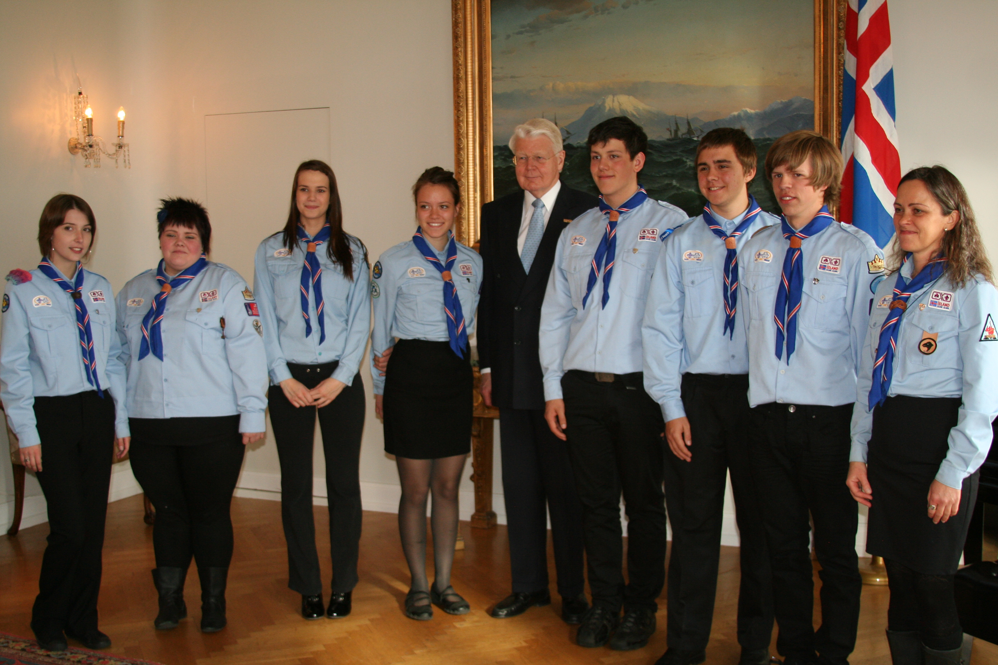 Á meðfylgjandi mynd eru frá vinstri: Unnur Líf Kvaran, Ólöf Huld Magnúsdóttir, Guðný Helgadóttir, Vala Hauksdóttir, forseti Íslands hr. Ólafur Ragnar Grímsson, Daníel Bergur Ragnarsson, Jón Páll Guðjónsson, Hrafnkell Úlfur Ragnarsson og Auður Lilja Arnþórsdóttir, félagsforingi Skátafélagsins Fossbúa.