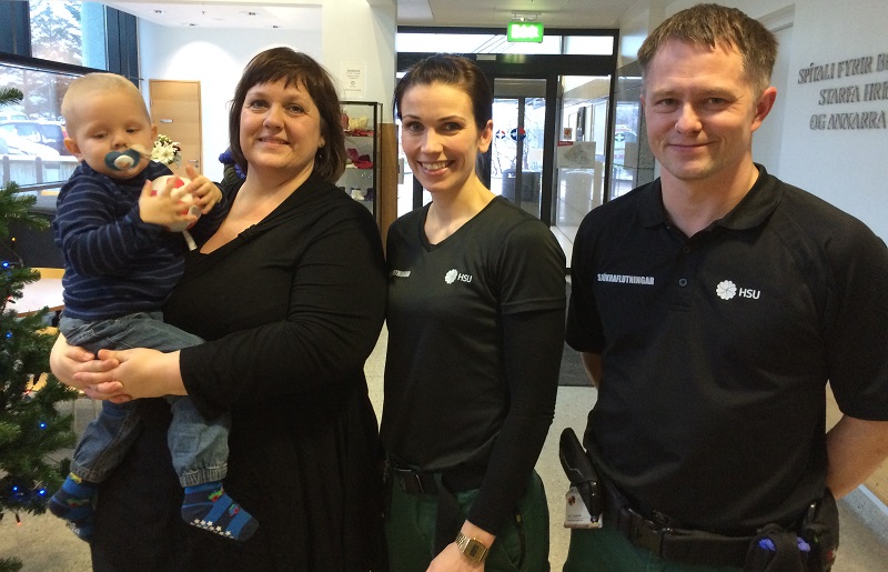 Það var Þorvarður Ragnar Þórarins Sigrúnarson, tveggja ára drengur úr Þorlákshöfn, sem tók á móti gjöfinni ásamt móður sinni, Sigrúnu Berglindi Ragnarsdóttur.