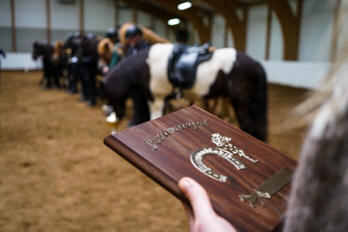 Helgi Eyleifur Þorvaldsson, brautarstjóri búfræðibrautar, ávarpar gesti, sem geta svo notið þess að kynnast nánar nemendum og hrossum þeirra í vetur ásamt sýningaratriðum og úrslita í Gunnarsbikarnum.