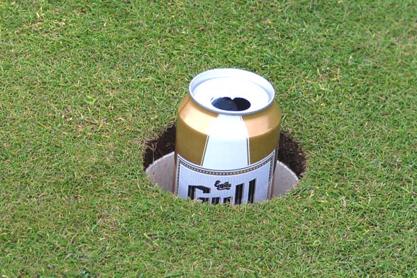 Þeir gerðu sér það að leik að troða bjórdósum ofan í holuna á 7. flötinni og tröðkuðu allt í kringum hana og eyðilögðu.