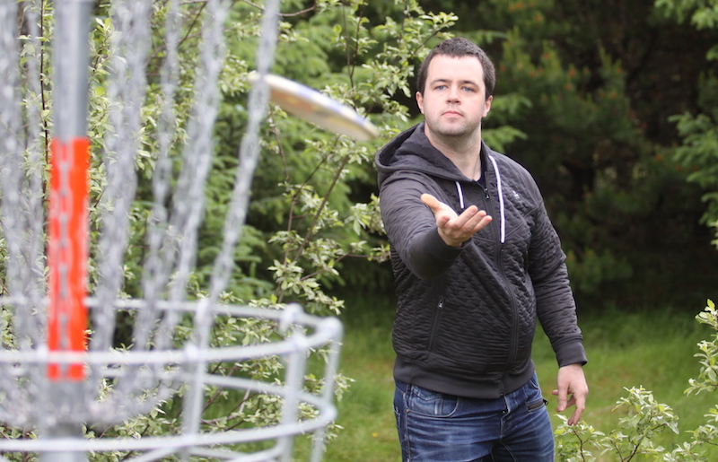 Bjarki Þór segir nokkuð marga stunda frisbígolf reglulega. Íþróttin er spiluð eftir svipuðum reglum og golf þar sem takmarkið er að kasta diskinum í körfuna í sem fæstum skotum.