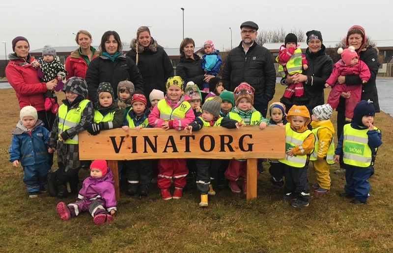 Í morgun var afhjúpað skilti á Vinatorgi, við leikskólann Brimver á Eyrarbakka, með nafni torgsins.