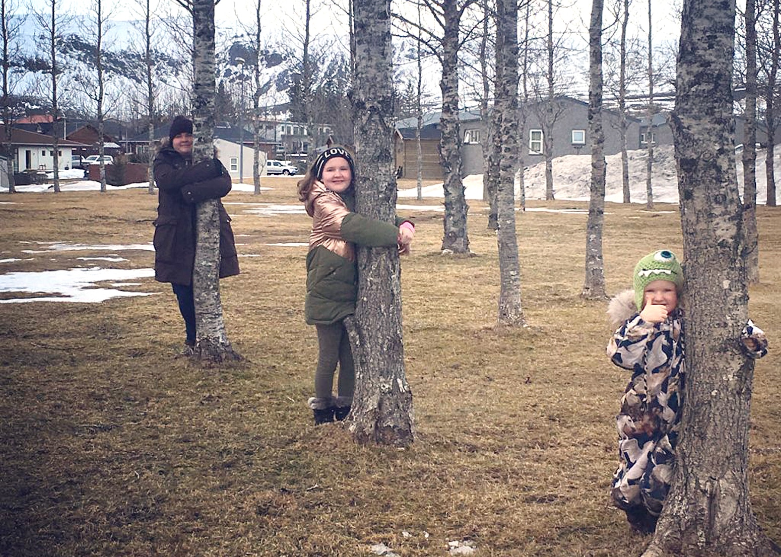 Skógræktin hvetur landsmenn til að leita huggunar gegn veirufárinu með því að knúsa tré.
