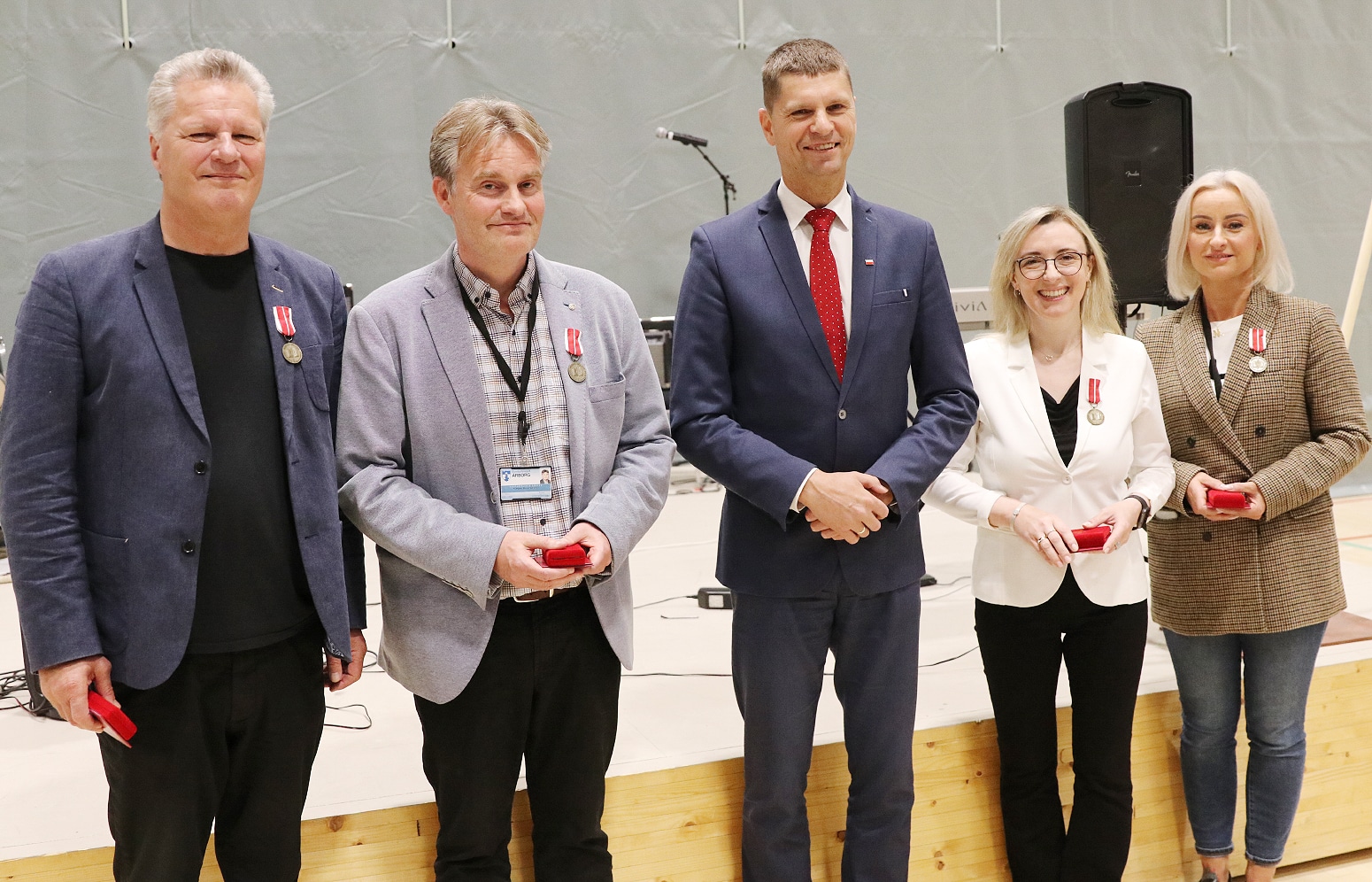 Þau Aneta Figlarska, kennsluráðgjafi í fjölmenningu hjá fjölskyldusviði Árborgar, Magdalena Markowska, sérkennari í Vallaskóla, Guðbjartur Ólason, skólastjóri Vallaskóla og Þorsteinn Hjartarson, sviðsstjóri fjölskyldusviðs Árborgar voru sæmd heiðursorðum fyrir að styðja pólska menntun á erlendri grundu.