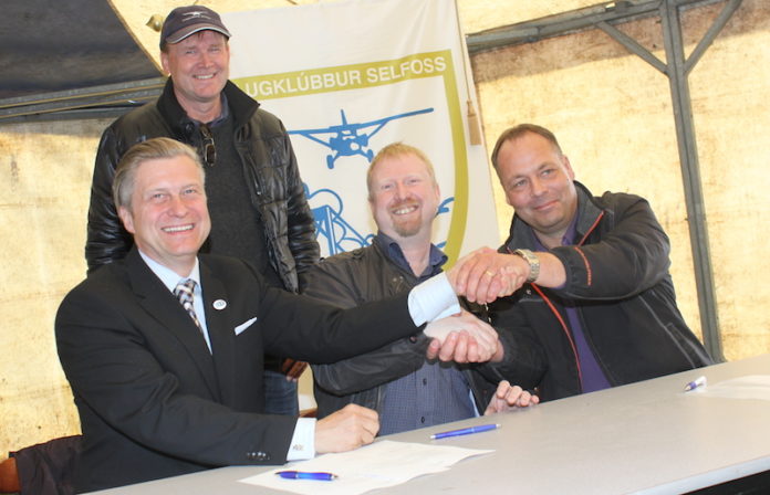 Undirritunin var gerð á 40 ára afmælishátíð Flugklúbbs Selfoss sem stendur nú yfir á Selfossflugvelli. Þar er fjölmenni og margt að sjá, t.d. eru listflugsýningar og karamelluflug á dagskránni.