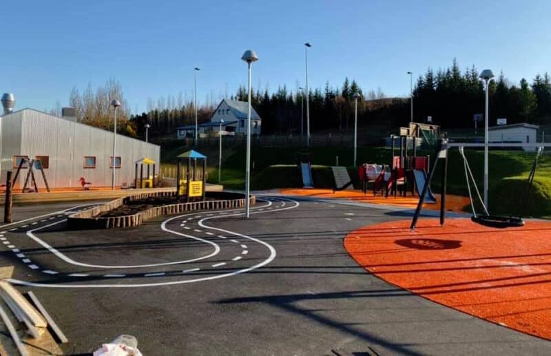 „Vöruúrvalið hefur breyst mikið frá því við byrjuðum með Lappset umboðið. Í dag flytjum við inn girðingar, gervigras, gúmmíhellur, tartan, endurunnið plast, hjólabrettaparka, hjólabrautir, reiðhjólaskýli og standa, bekki og ruslafötur og svo mætti lengi telja. Við tökum einnig að okkur gerð leiksvæða og erum með gröfur og vörubíla ásamt hörkuduglegu starfsfólki,“ segir Jóhann.
