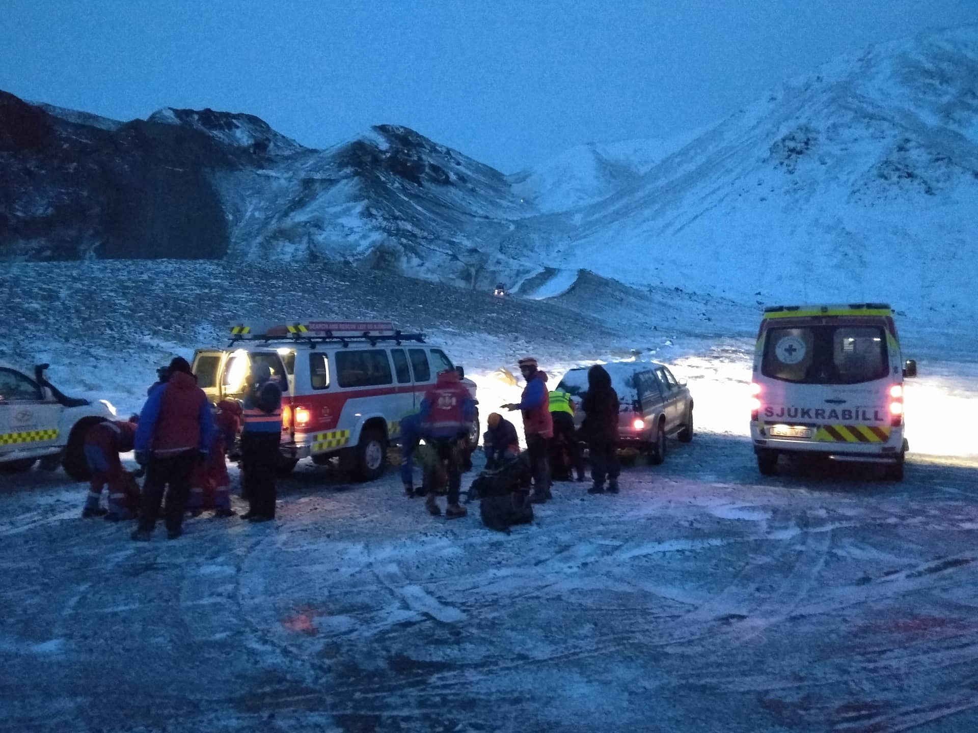 Mikil ís var á svæðinu og björgunarfólk þurfti að vera vel útbúið til að fóta sig þar. Var því kallað eftir sérstökum fjallabjörgunarbúnaði á vettvang.