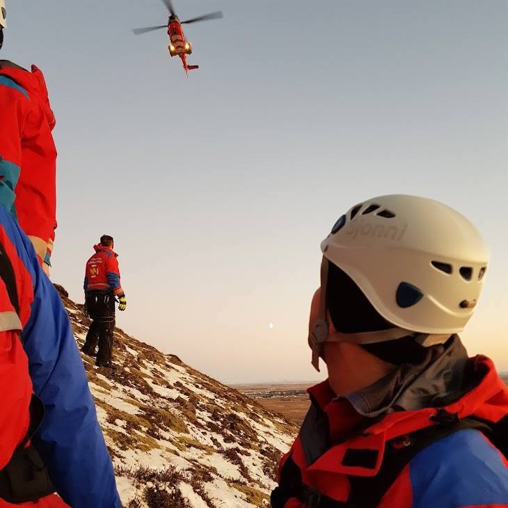 Þegar búið var að staðsetja konuna í fjallinu og meta aðstæður var ákveðið að óska eftir aðstoð þyrlu Landhelgisgæslunnar. Var konunni slakað áleiðis niður hlíðina með línu á ákjósanlegan stað þar sem hún var hífð upp í þyrlu og flutt á sjúkrahús.