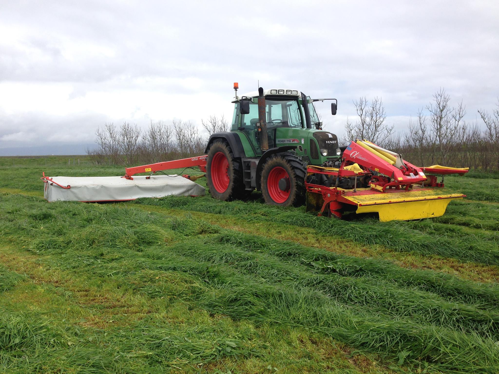 „Ég sló einhverja þrjá hektara, grasið á þeim var fínt, þetta var vallarfoxgras. Það er eitthvað lengra í næsta slátt, líklega vika, en lítil grasspretta var í vor vegna kulda eins og allir vita,“ sagði Rútur í samtali við Vísi.