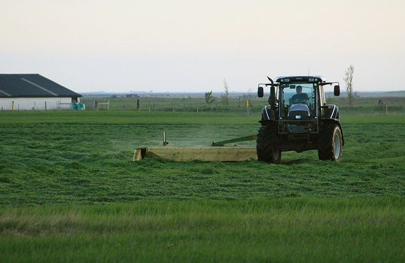 „Ég hef oft byrjað að slá í kringum 10. júní þannig að þetta er ekki nema viku fyrr en venjulega,“ segir Sævar og býst við því ef sprettan verður góð að hann geti náð að slá þessi stykki þrisvar sinnum í sumar.