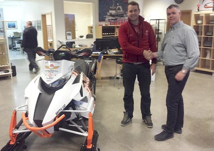Síðdegis í dag tók Kári Rafn Þorbergsson formaður sleðaflokks Flugbjörgunarsveitarinnar á Hellu við nýjum vélsleða, Arctic Cat M8000 limited es árgerð 2015, frá Arctic sport ehf.
